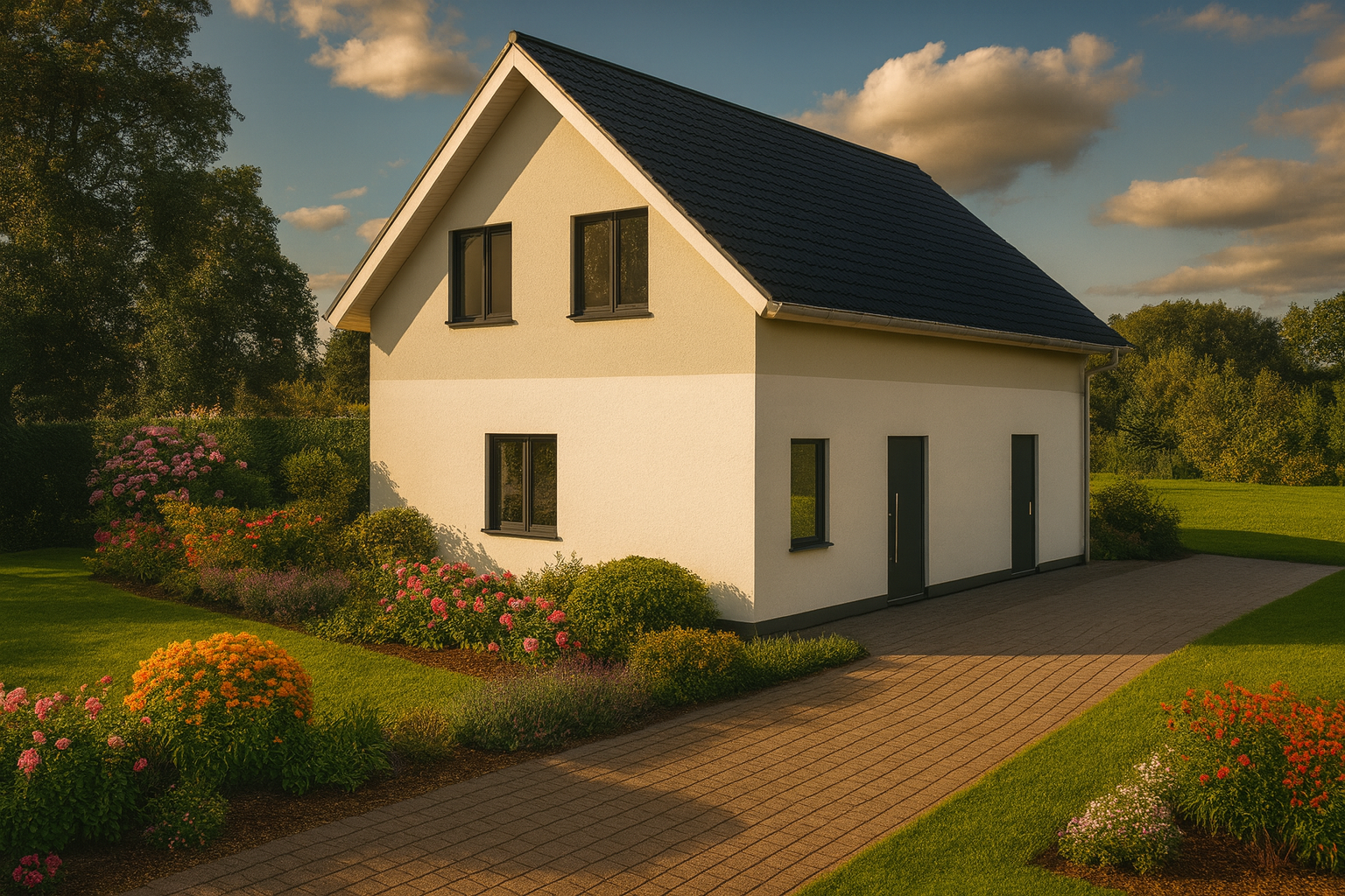Sie bringen lediglich das Grundstück, um alles Weitere kümmern wir uns. Von der Bodenplatte bis zur Schlüsselübergabe – alles aus einer Hand.