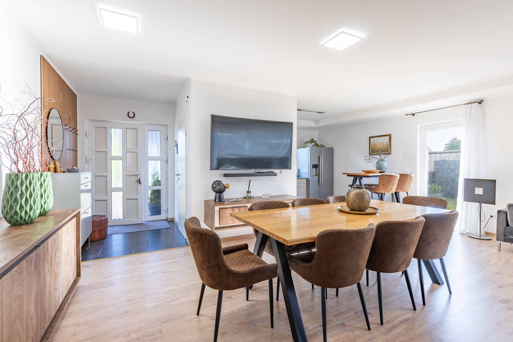 Gebaut im Jahr 2015, wirkt dieser Bungalow eher wie eine Antwort auf Fragen, die man sich erst morgen stellt. Alles auf einer Ebene – ca. 137 m² Wohnfläche, perfekt verteilt auf vier Zimmer, die mitdenken: offen genug für Begegnung, privat genug für Rückzug.